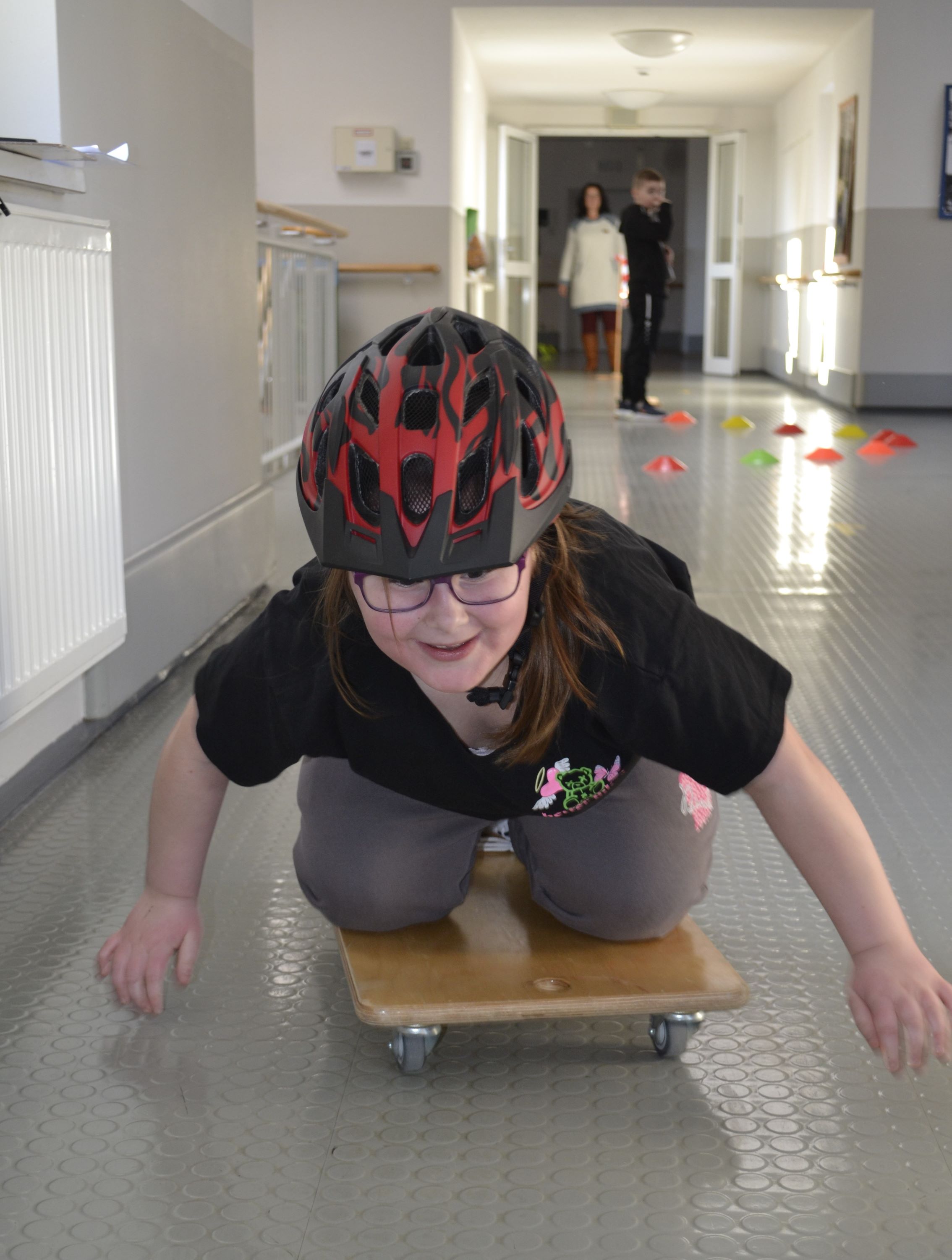 So dienten beim Biathlonwettbewerb Teppichfliesen als Skier, Skeleton fuhr man mit Rollbrettern und Curling spielten die Schüler auf dem Teppich. Dazu gab es noch einen interessanten Leitergolf-Wettbewerb.