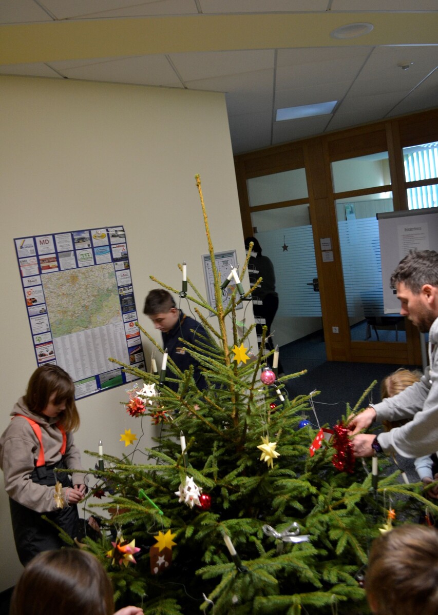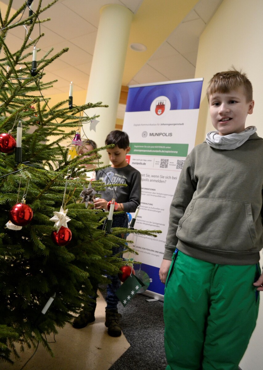 In diesem Jahr wurden unsere Schülerinnen und Schüler von der Stadtverwaltung Johanngeorgenstadt eingeladen, den Weihnachtsbaum im Rathaus zu schmücken. Mit viel Freude und Kreativität verliehen die Mädchen und Jungen dem Baum ein farbenfrohes Gewand.